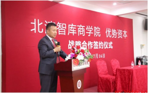 随后,北清智库商学院总裁罗波先生致辞。罗总首先强调了此次合作的重要性,经过北清智库商学院战略委员会决定,以及优势资本董事会决议,北清智库商学院及优势资本在企业资本的视角下,就企业家在资本实践与资本服务等方面展开股份制合作,奠定了北清智库商学院在中国企业家教育的领先地位,真正强者之间的合作必然将引领商学院新时代产品体系的突破!