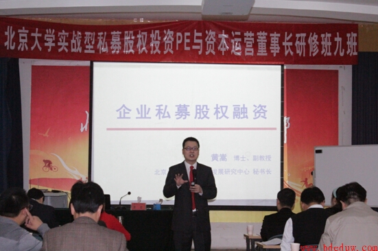随后的两天由北京大学金融系副教授,北京大学金融与产业发展研究中心秘书长黄嵩老师给大家讲解“企业私募股权融资”的课程。黄老师用他专业的知识,幽默的语言,严谨的逻辑,透彻的分析,经典新颖的案例,为大家深刻揭示了企业融资的精髓,引来同学们的阵阵喝彩。